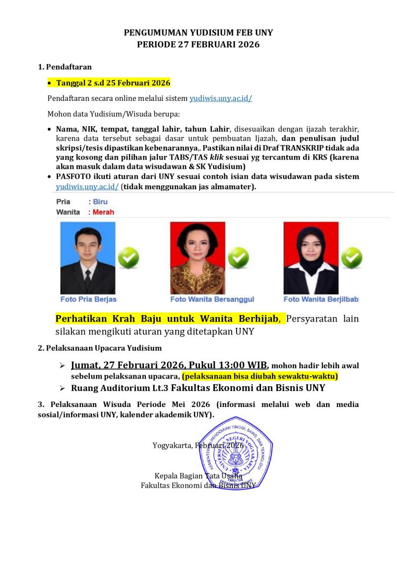 PENGUMUMAN YUDISIUM FEB UNY PERIODE 27 FEBRUARI 2026