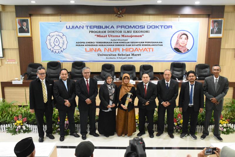 Ujian terbuka ini dipimpin oleh Dekan FEB UNS dengan tim penguji yang terdiri atas Prof. Dr. Anton Agus Setyawan (penguji eksternal), Aldy Fariz Achsanta, Ph.D., Dr. Bambang Hadinugroho, dan Dr. Hidajat Hendarsjah. Proses bimbingan riset dilakukan oleh tim promotor yang terdiri dari Prof. Agung Nur Probohudono, Ph.D., Dr. Atmaji, M.M., dan Arum Setyowati, M.M., Ph.D. Agenda ini turut dihadiri oleh pimpinan FEB UNY, Ketua LLDIKTI Wilayah V, serta rekan sejawat dan keluarga promovenda.